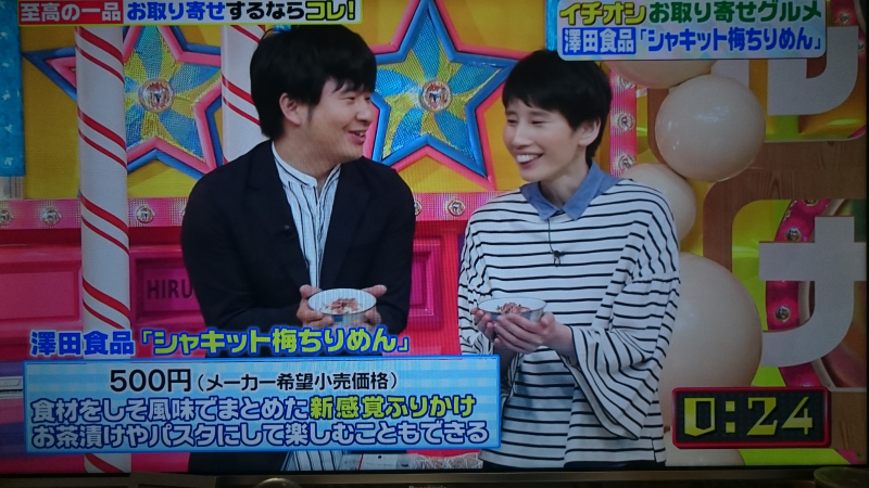 お取り寄せコーナーで「シャキット梅ちりめん」を紹介いただきました! →記事を詳しく見る