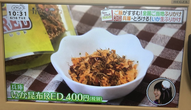 日本テレビの朝の情報帯番組「バゲット」内で「お取り寄せふりかけランキング」コーナーにていか昆布REDが3位になりました! →記事を詳しく見る